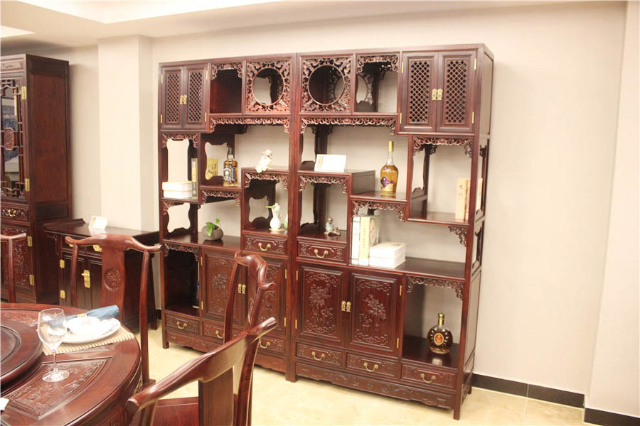 多寶格又稱“百寶格”或“博古格”,是專用于陳設古玩器物的。它是進入清代才興起,并十分流行的家具品種。多寶閣可以呈現(xiàn)出高低錯落的視覺效果,很是通透。