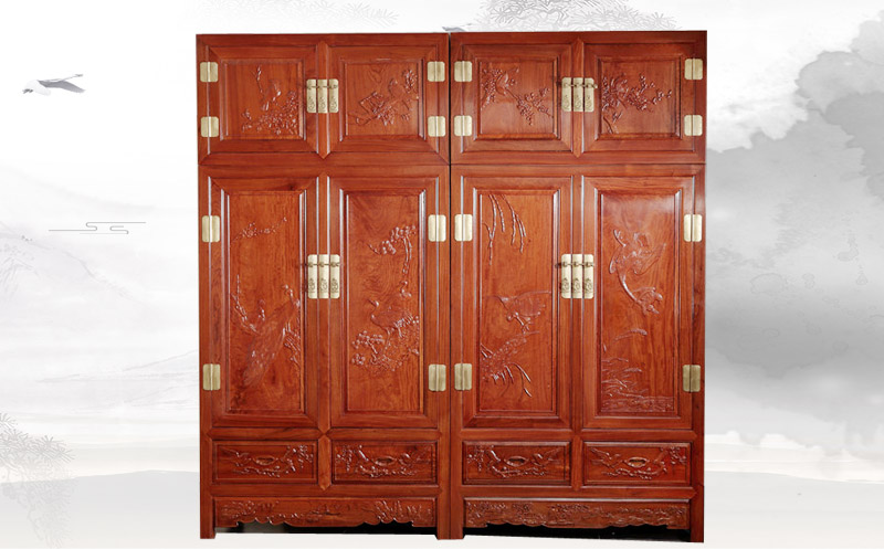 檀雕花鳥頂箱柜